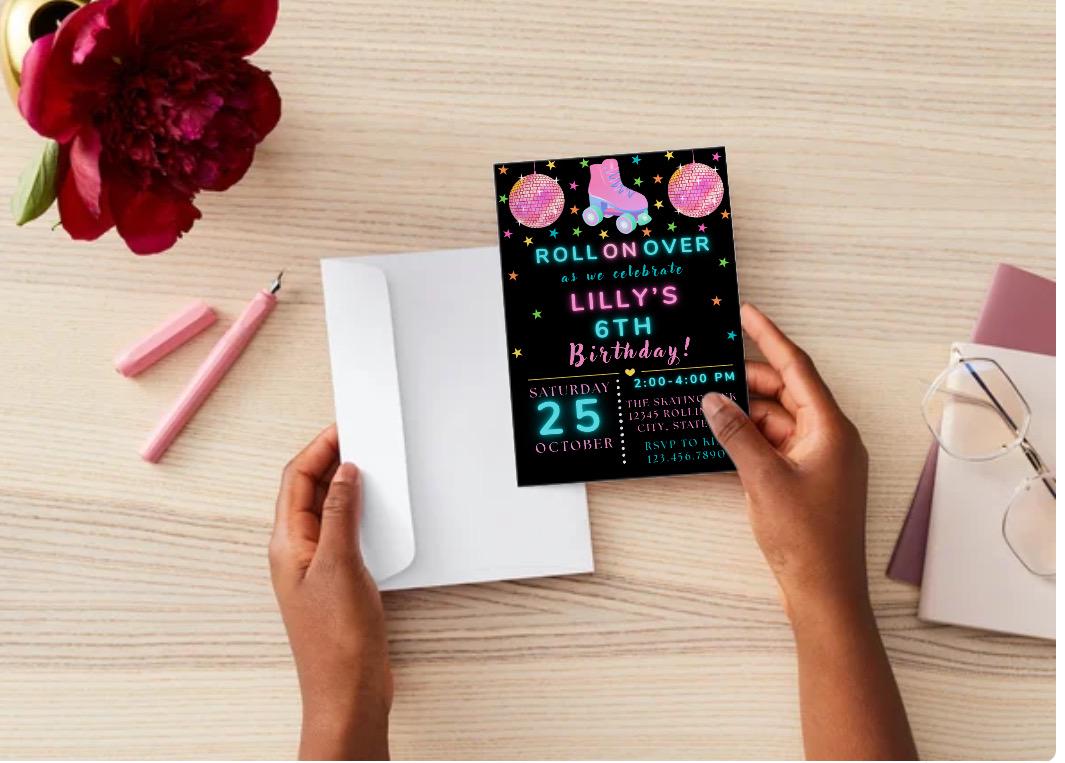 1 Editable Roller Skating Birthday Invitation (5x7 inches)